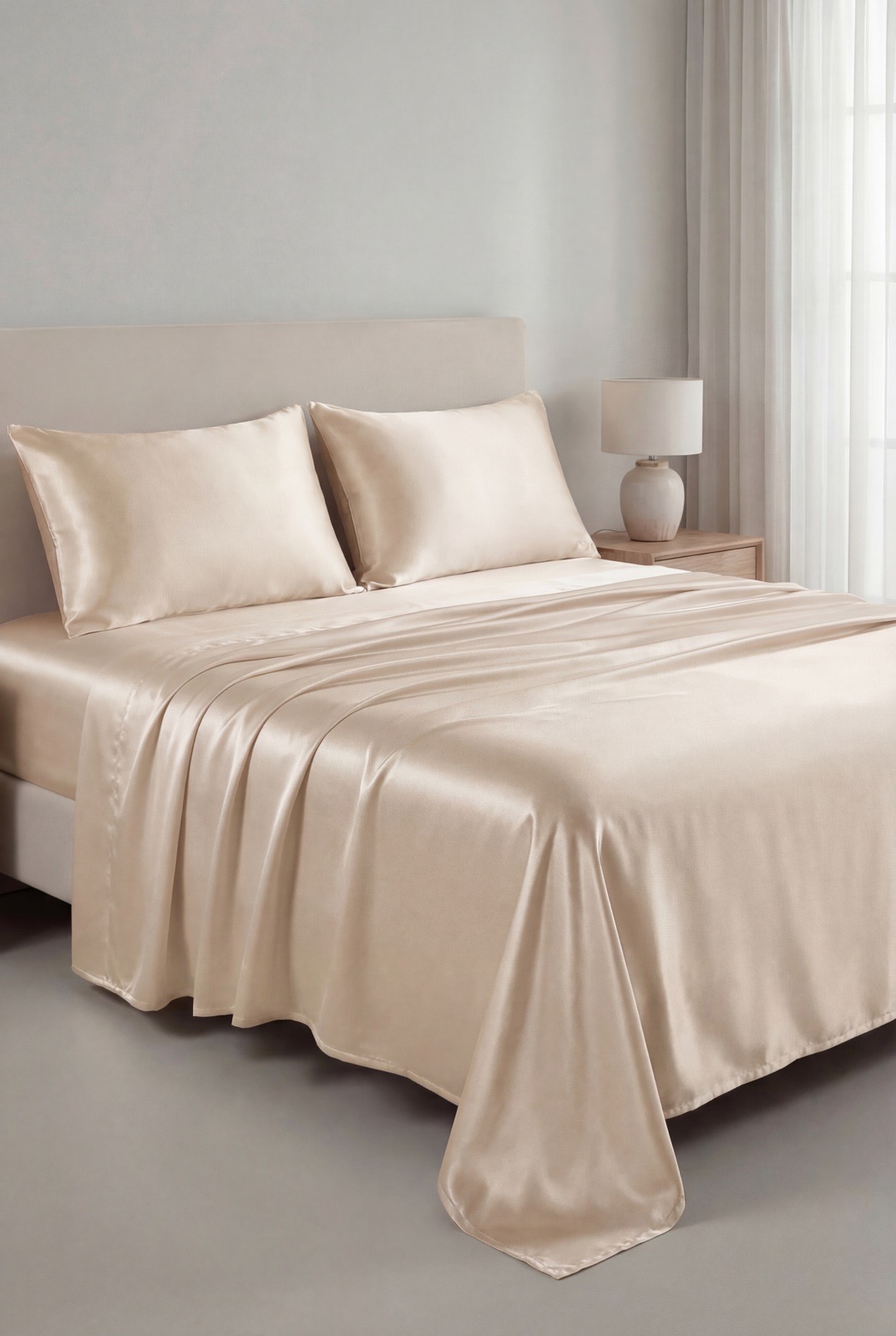 A luxurious 22 Momme mulberry silk bedsheet. Soft, breathable, and perfect for a high-quality sleep experience.