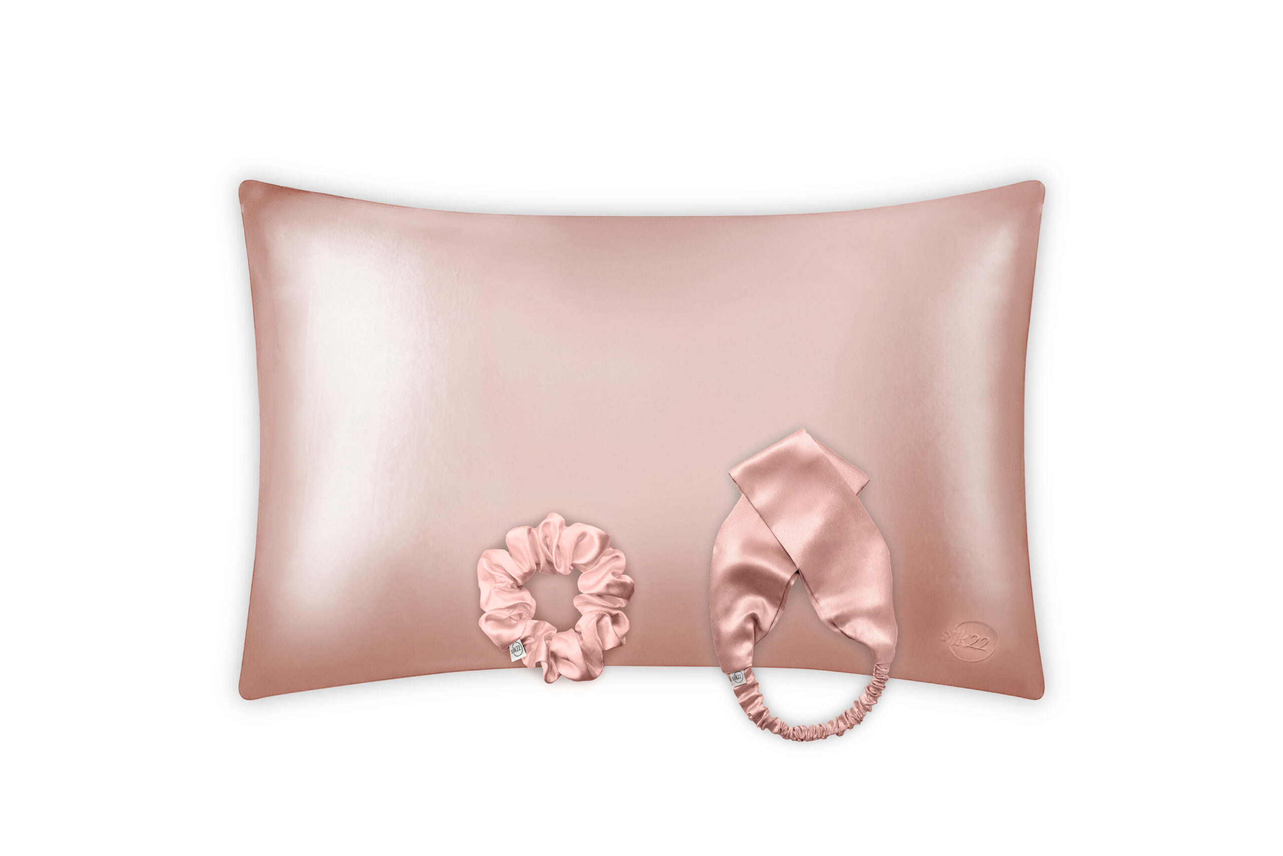 Сет од луксузна навлака за перница (50×70 cm), трака за коса и стегач изработени од 19 Momme свила од црница. Меки, дишат и хипоалергени, помагаат да се намали кршењето на косата, појавата на електрицитет и брчки, за нежна и елегантна грижа додека спиете.
